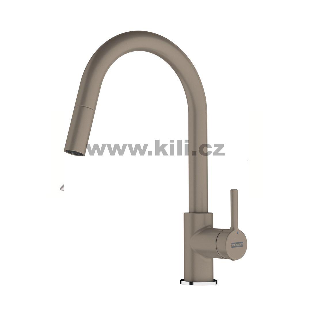 Tlaková páková směsovací baterie, otočná 360°, s vytahovací koncovkou opatřenou perlátorem.