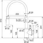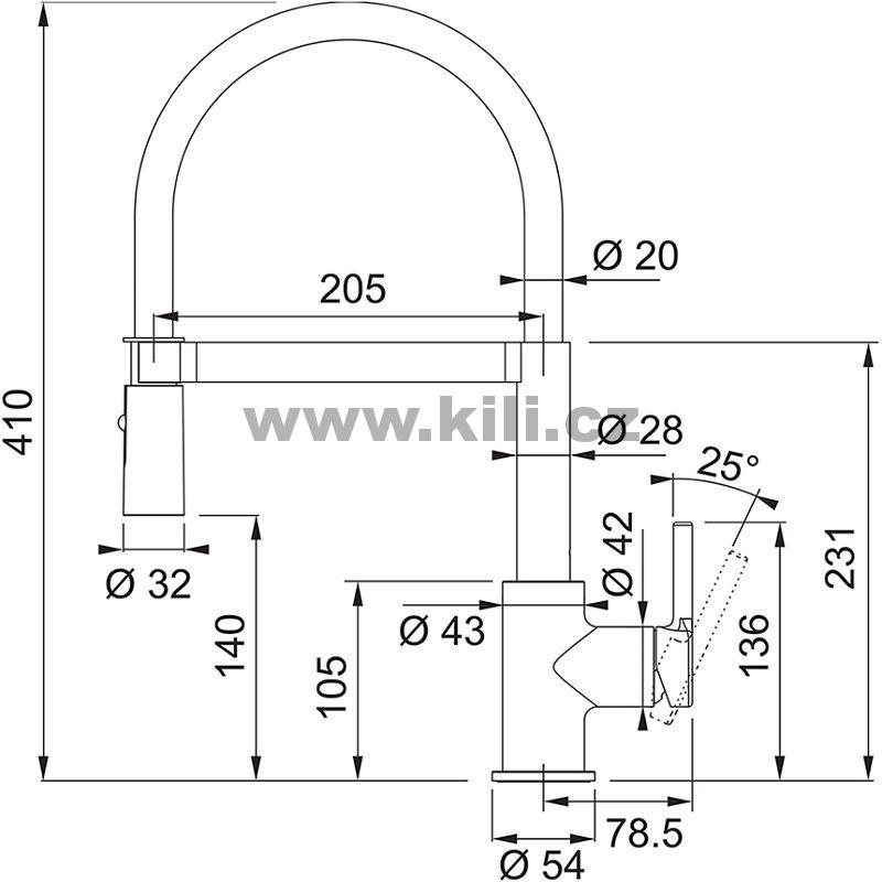 Tlaková páková směsovací baterie, otočná 150°, s vytahovací koncovkou opatřenou perlátorem, s regulací sprcha/proud.