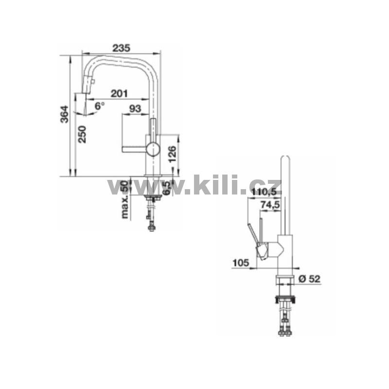 - Snazší ovládání v případě instalace u zadní stěny díky ovládací páce se svislou neutrální polohou
