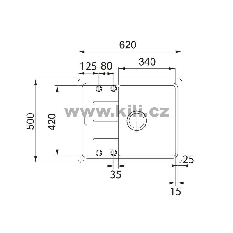 Dřez BFG 611-62 3 1/2" 620x500mm šedý kámen