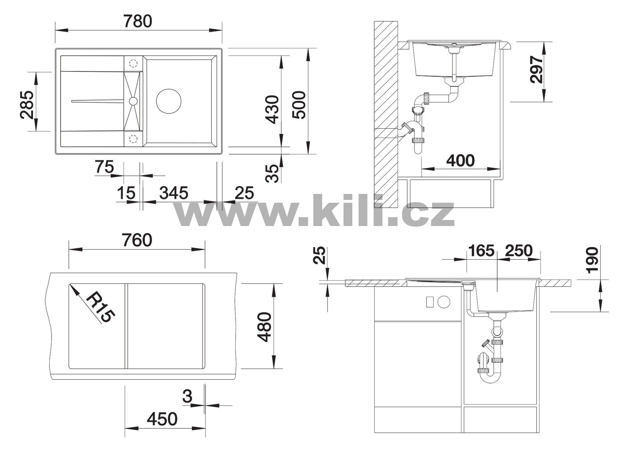 | Specifikace | Délka: 780 mm Šířka: 500 mm Hloubka: 190 mm Skříňka: 450 mm |