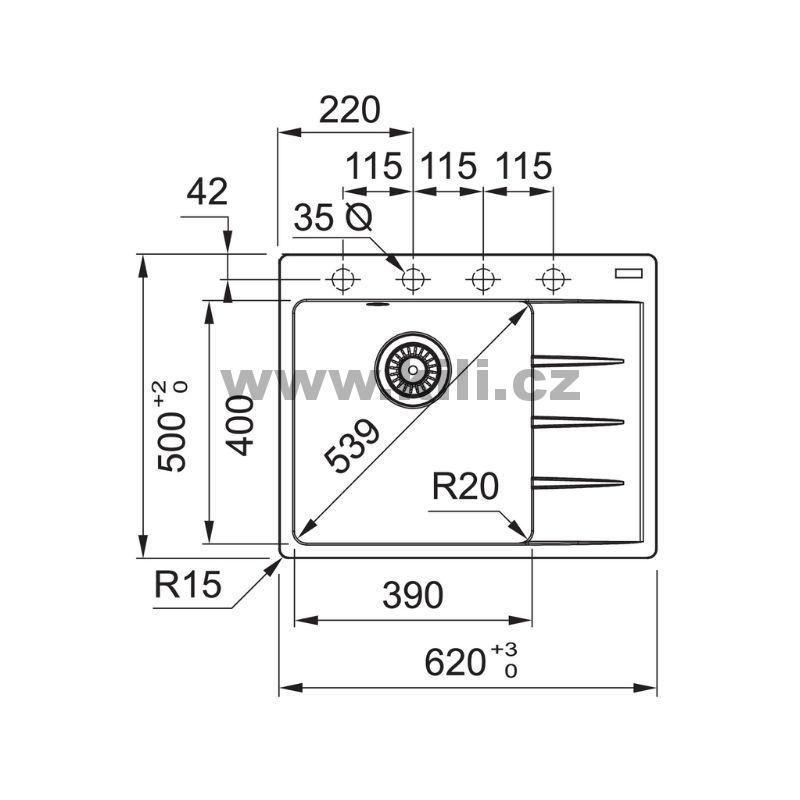 - Rozměr dřezové nádoby: 390 x 400 x 200 mm