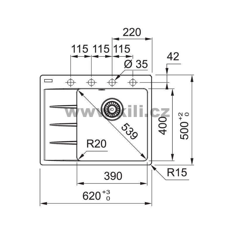 - Rozměr dřezu: 620 x 500 mm