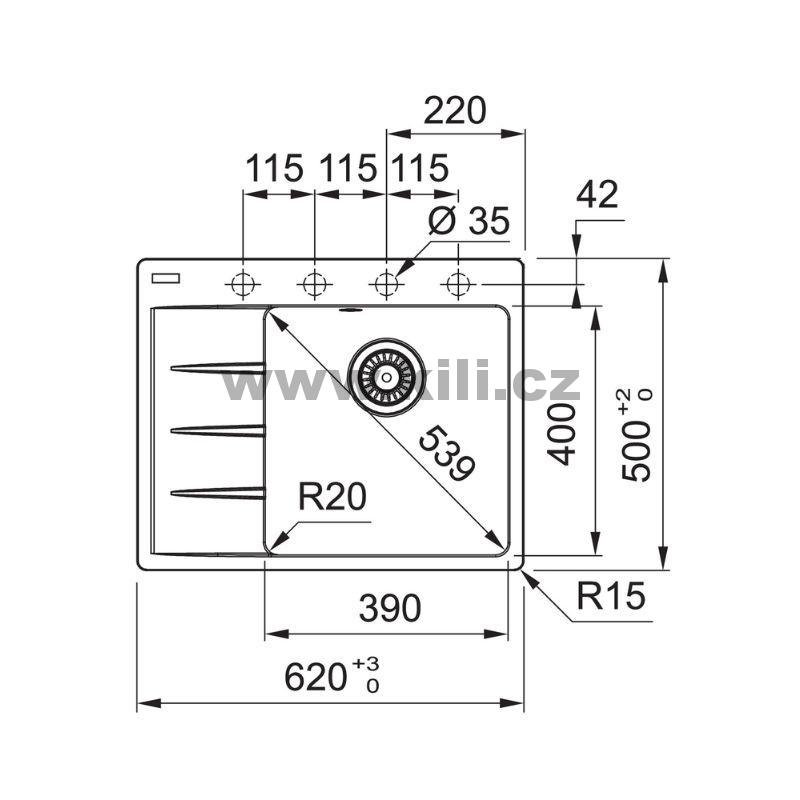 - Rozměr dřezové nádoby: 390 x 400 x 200 mm