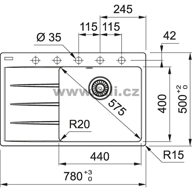Dřez CNG 611-78 TL/7, 3 1/2 onyx, odkap vlevo, horní