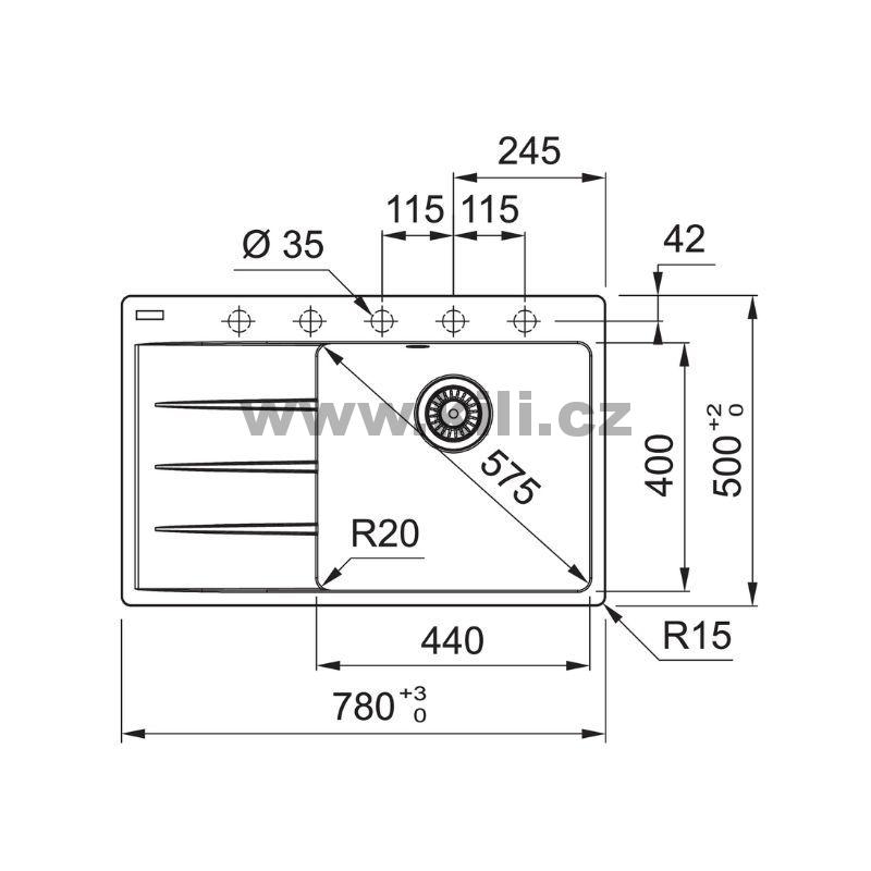 - Rozměr dřezové nádoby: 440 x 400 x 200 mm