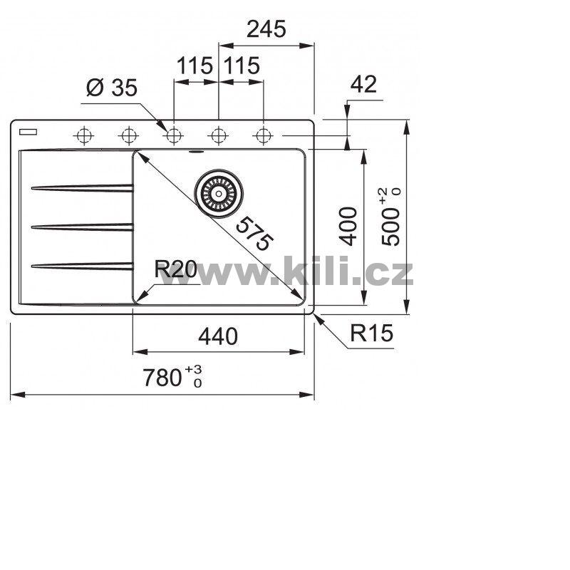 Dřez CNG 611-78 TL/7 šedý kámen 3 1/2" 780x500mm , odkap plocha vlevo