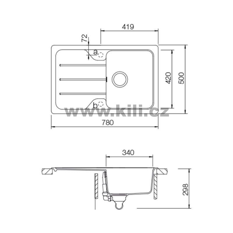 | Specifikace | Délka: 780 mm Šířka: 500 mm Hloubka: 190 mm Skříňka: 450 mm |