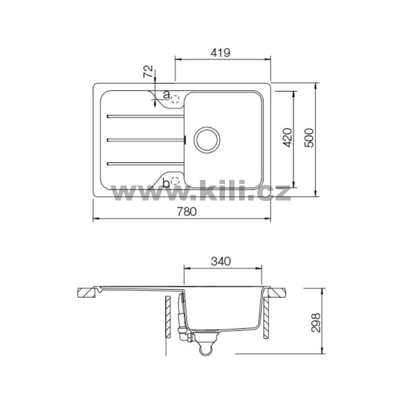 | Specifikace | Délka: 780 mm Šířka: 500 mm Hloubka: 190 mm Skříňka: 450 mm |