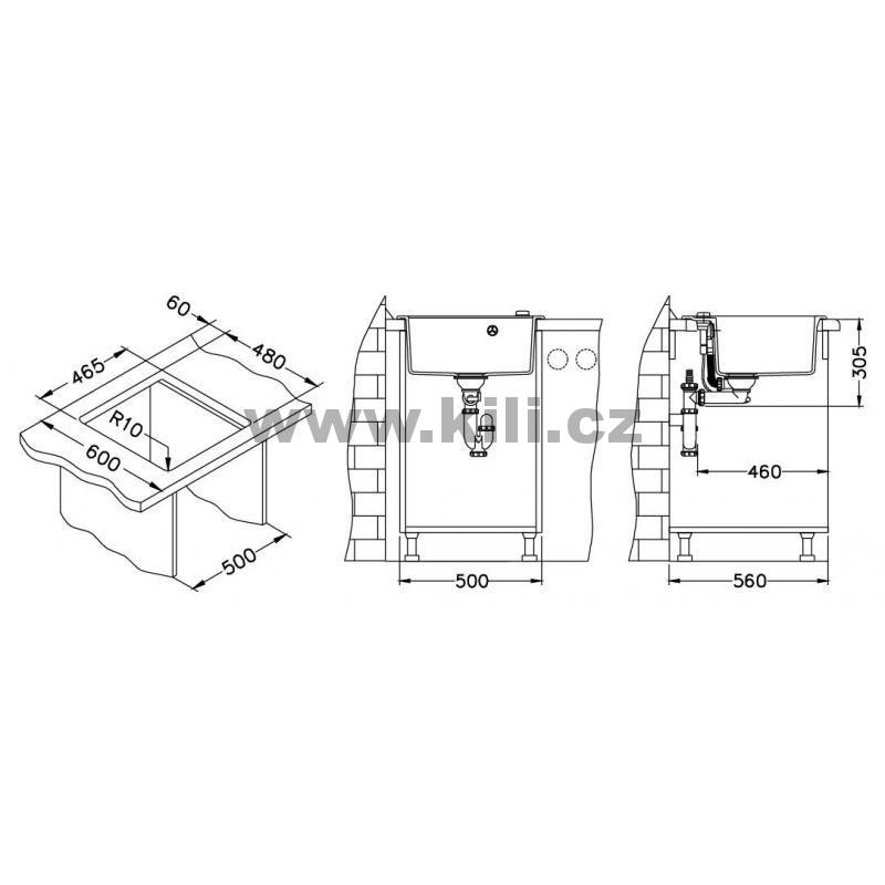 | Specifikace | Délka: 520 mm Šířka: 510 mm Hloubka: 200 mm Skříňka: 500 mm |