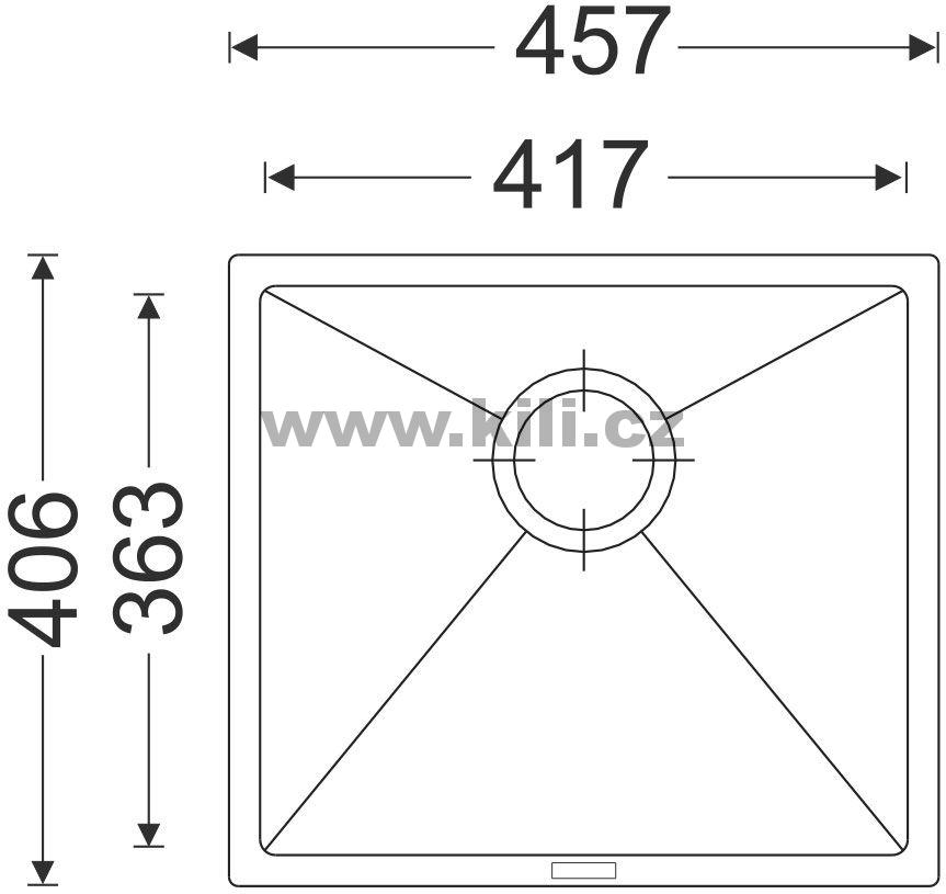 | Specifikace | Délka: 457 mm Šířka: 406 mm Hloubka: 203 mm Skříňka: 500 mm |