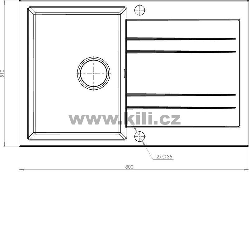 Dřez Grande 800, excentr 3 1/2“ metalblack, otočný, horní