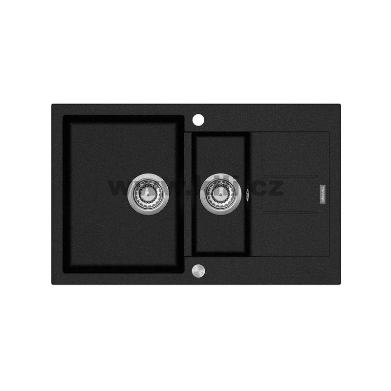 Granitový dřez s vaničkou a odkapem DG205C60bc Cubis ČERNÝ