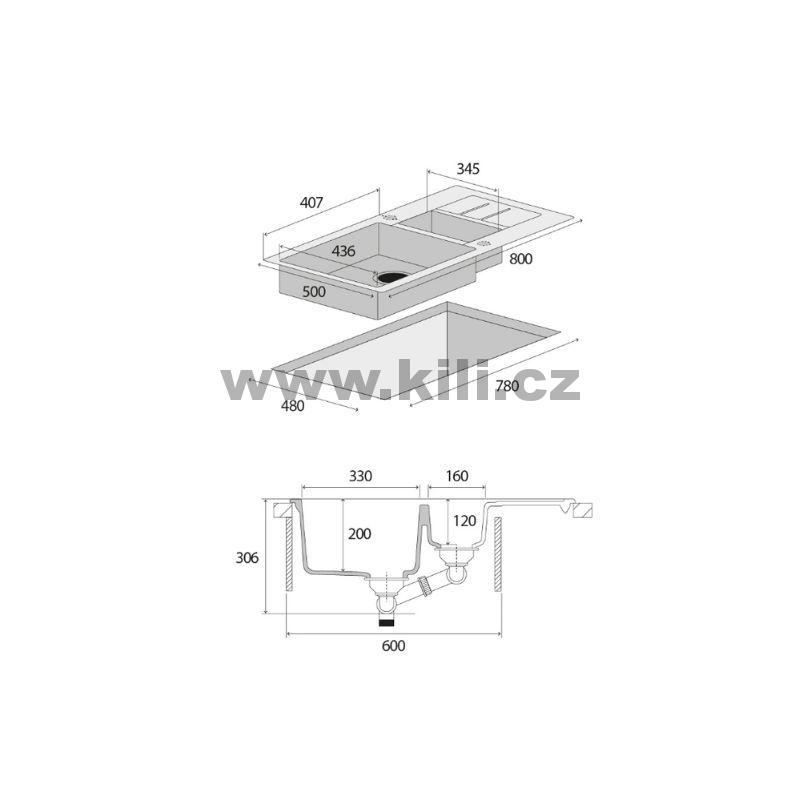 - Sifon: s odbočkou pro myčku na nádobí (součást balení)