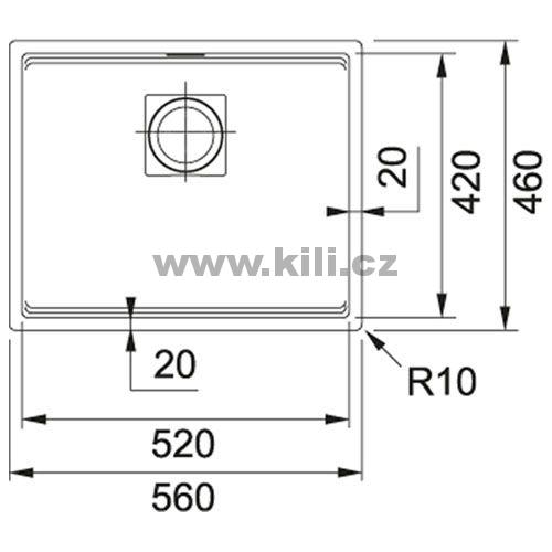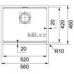 Dřez KNG 110-52 3 1/2"šedý kámen, bez odkapu, spodní