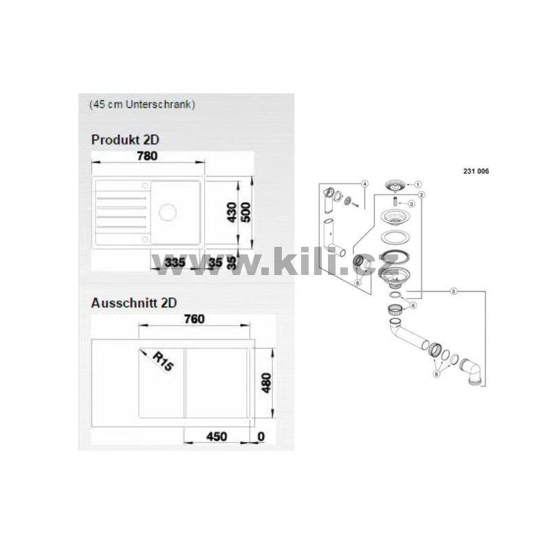 | Specifikace | Délka: 780 mm Šířka: 500 mm Hloubka: 190 mm Skříňka: 450 mm |