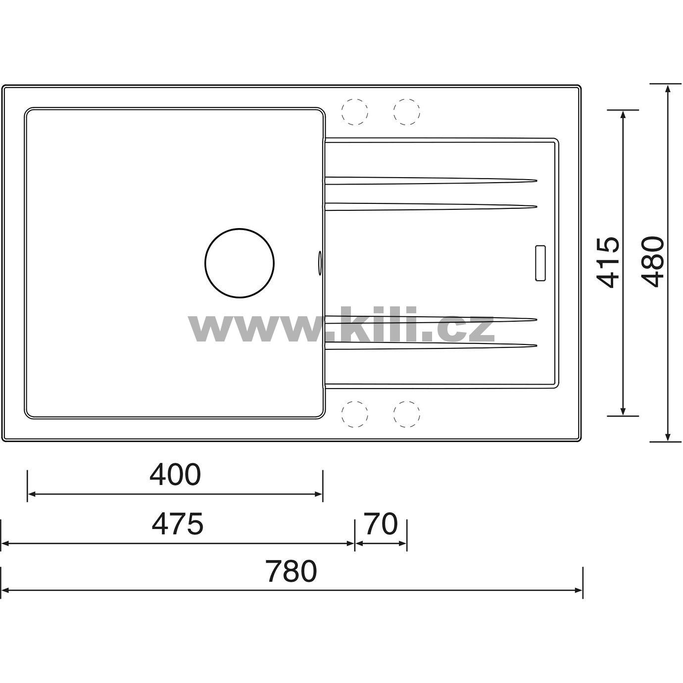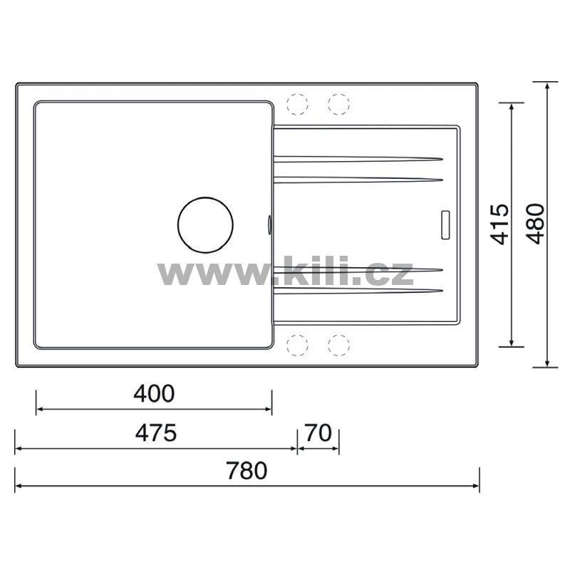 | Specifikace | Délka: 780 mm Šířka: 480 mm Hloubka: 190 mm Skříňka: 600 mm |