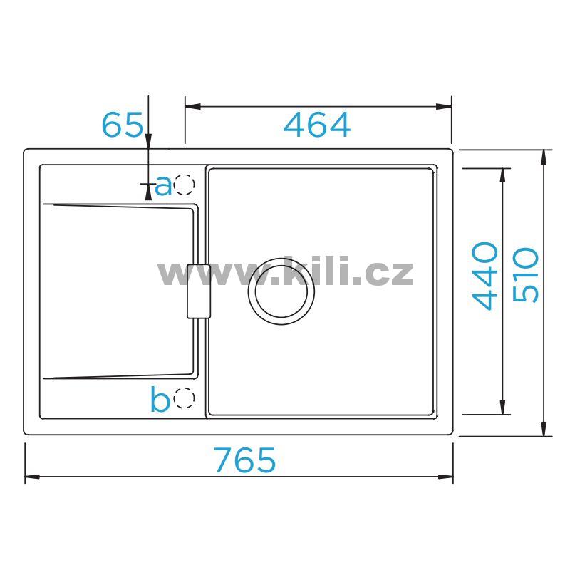 Dřez je dodáván včetně příchytek a sifonu pro úsporu místa s excentrickým ovládáním a diamantovým vrtákem pro vyvrtání otvorů.