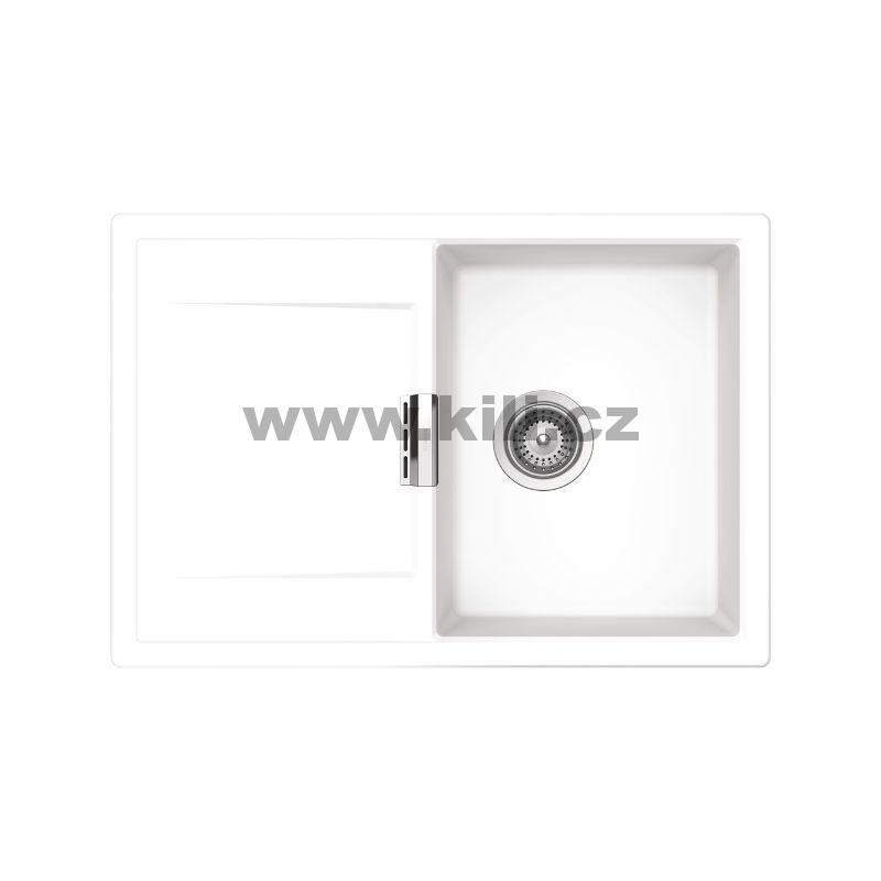 Dřez je dodáván včetně příchytek a sifonu pro úsporu místa s excentrickým ovládáním a diamantovým vrtákem pro vyvrtání otvorů.