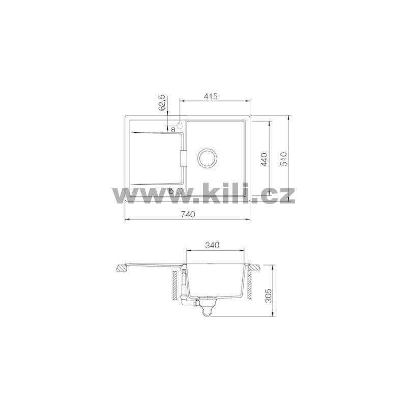Dřez je dodáván včetně příchytek a sifonu pro úsporu místa s excentrickým ovládáním a diamantovým vrtákem pro vyvrtání otvorů.