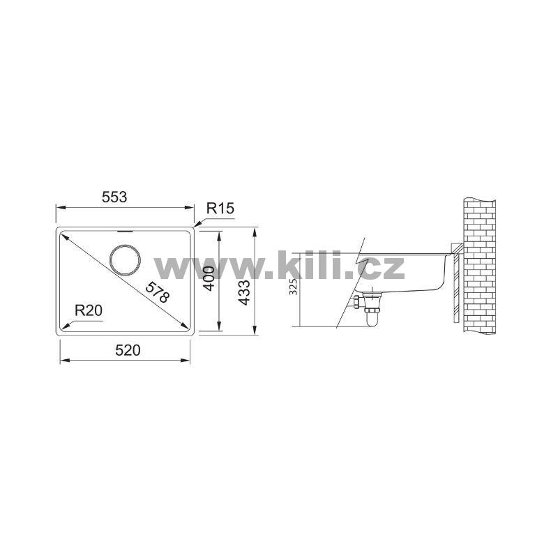 - Rozměr dřezu: 553 x 433 mm