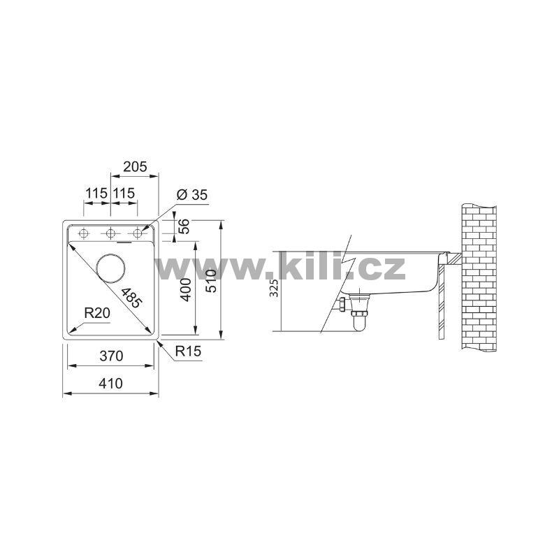 - Rozměr dřezové nádoby: 370 x 400 x 200 mm