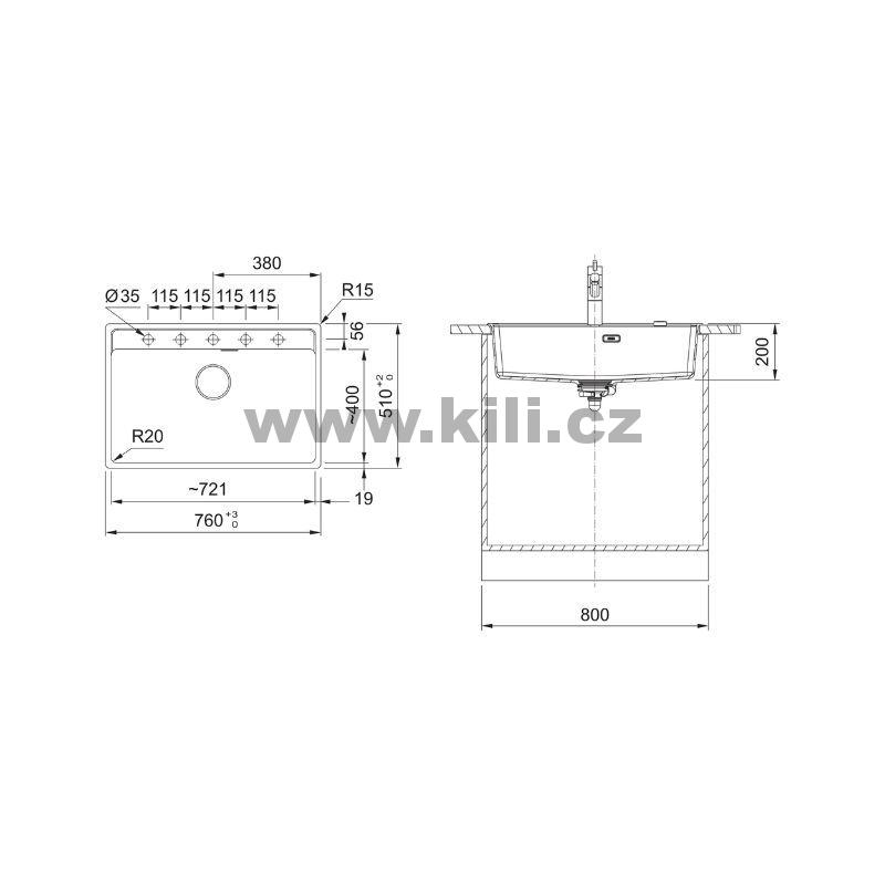 • Rozměr dřezové nádoby: 721 x 400 x 200 mm