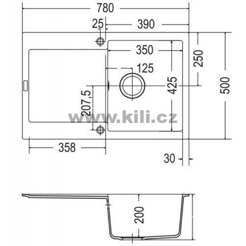 | Specifikace | Délka: 780 mm Šířka: 500 mm Hloubka: 200 mm Skříňka: 450 mm |