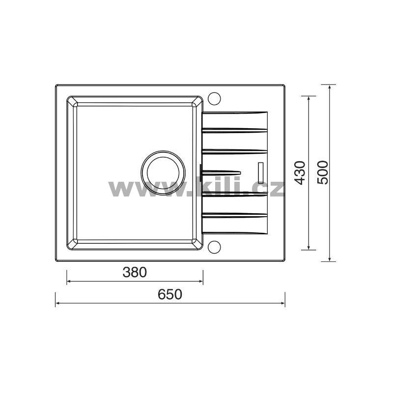 - Dřez z výroby bez otvorů, nutno zhotovit otvor pro baterii.