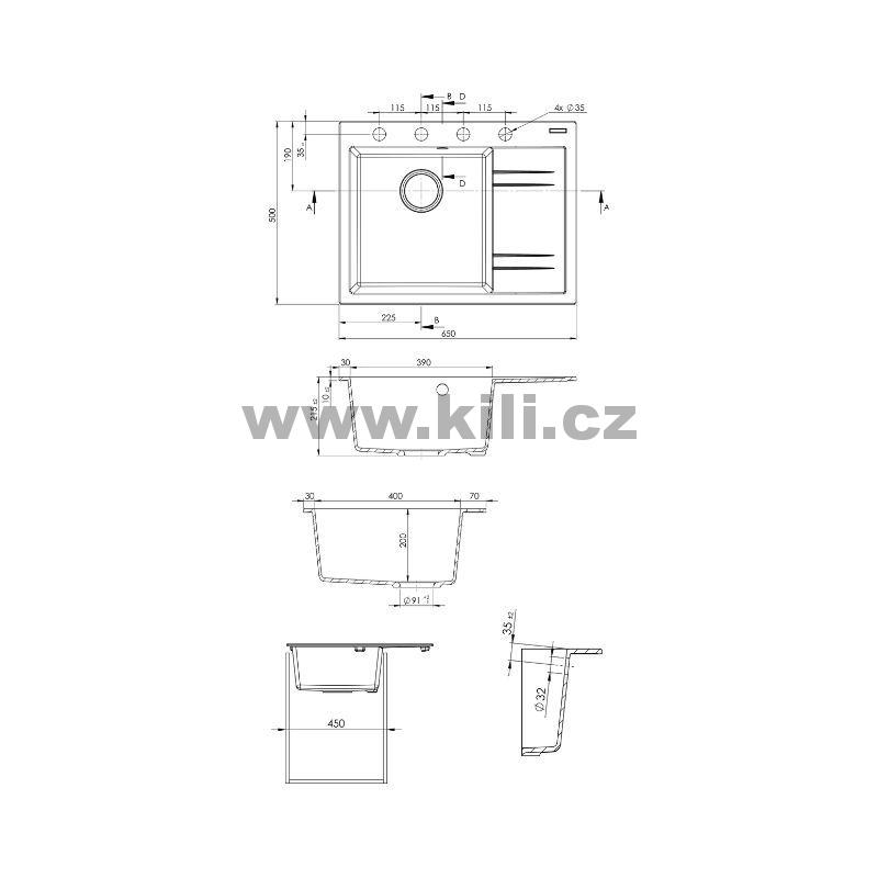 - Rozměr dřezu: 650 x 500 mm