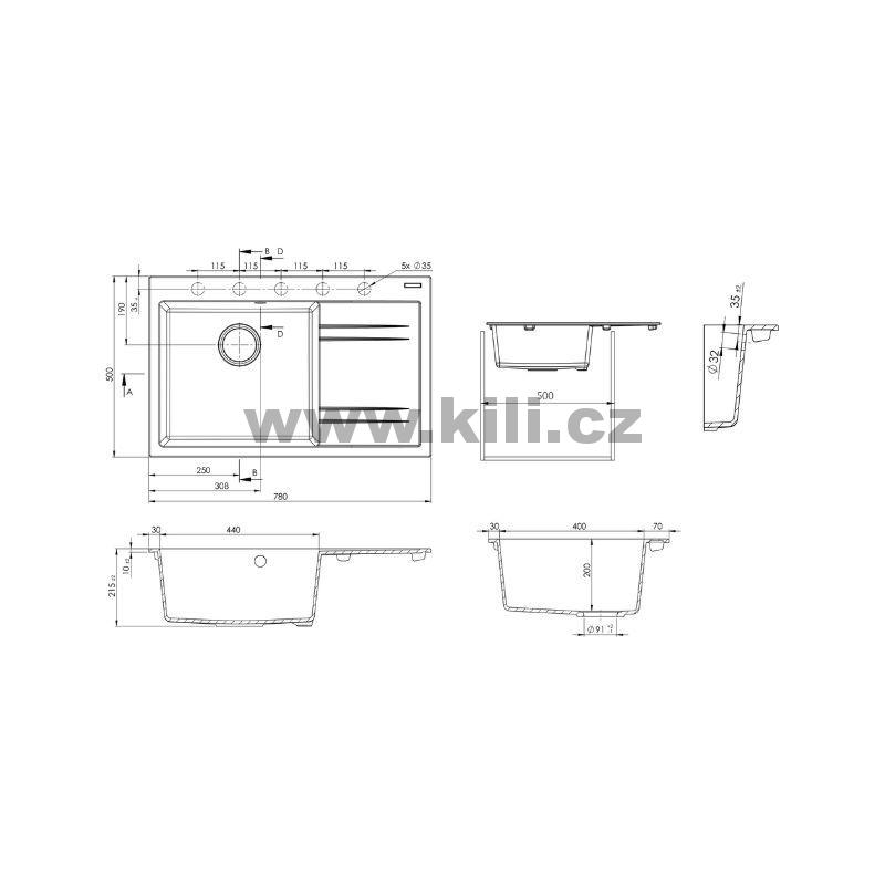 - Rozměr dřezu: 780 x 500 mm