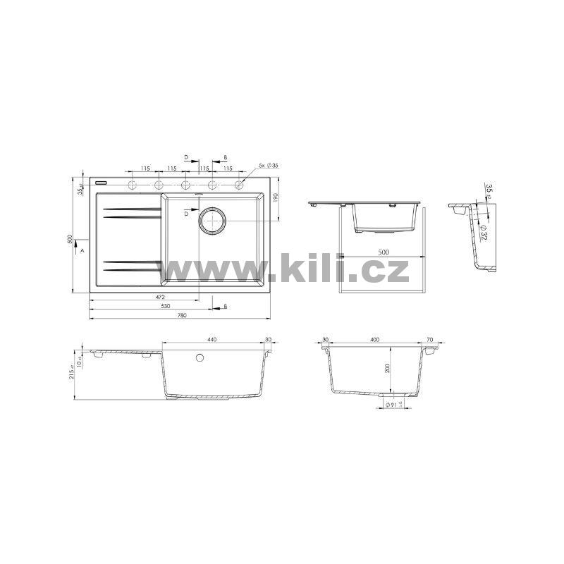 - Rozměr vany dřezu: 440 x 400 x 200 mm