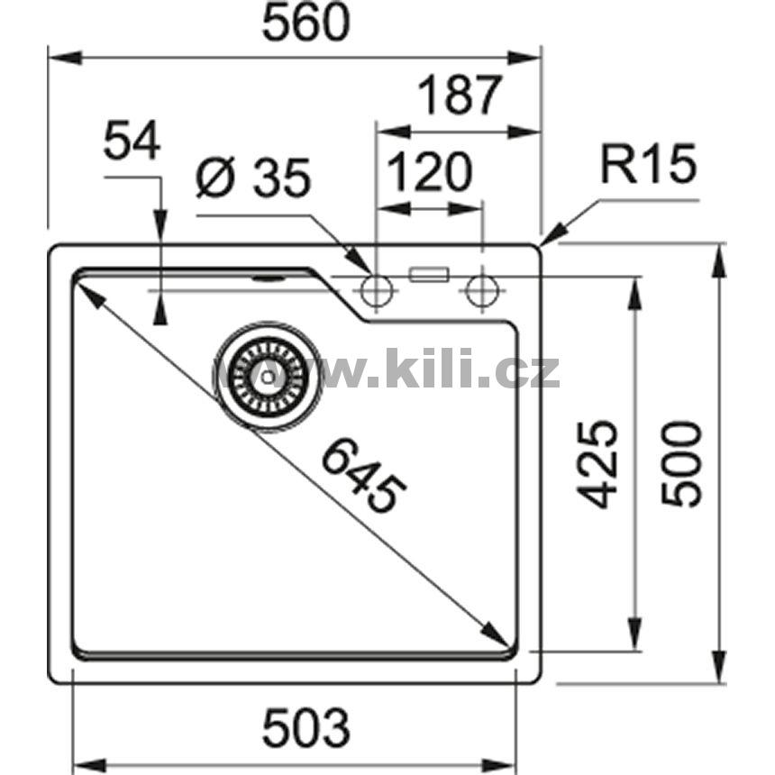 Dřez UBG 610-56, 3 1/2" kašmír, bez odkapu, horní