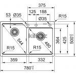 Dřez UBG 620-78, 3 1/2" onyx, větší vana v levo,horní