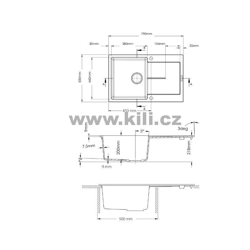 - Dřez z výroby bez otvorů, nutno zhotovit otvor pro baterii.