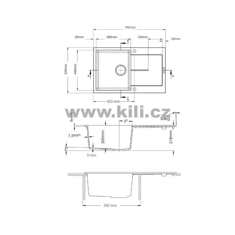 - Rozměr dřezu: 790 x 500 mm