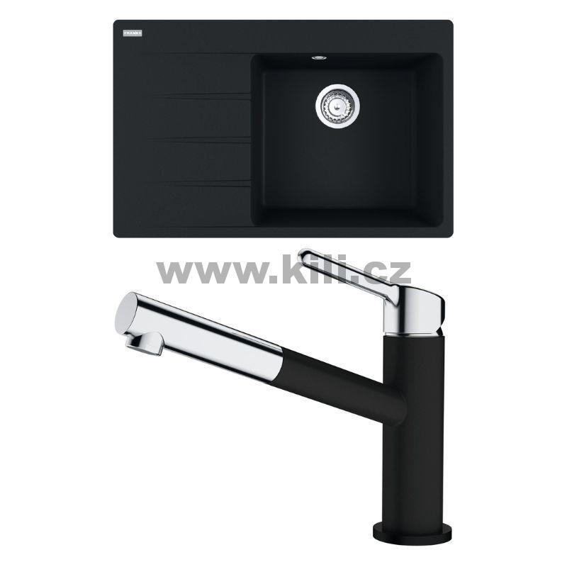 Set G227MČ dřez CNG 611-78 TL/7 matná černá 3 1/2" odkapávací plocha vlevo + baterie FC 3055.901