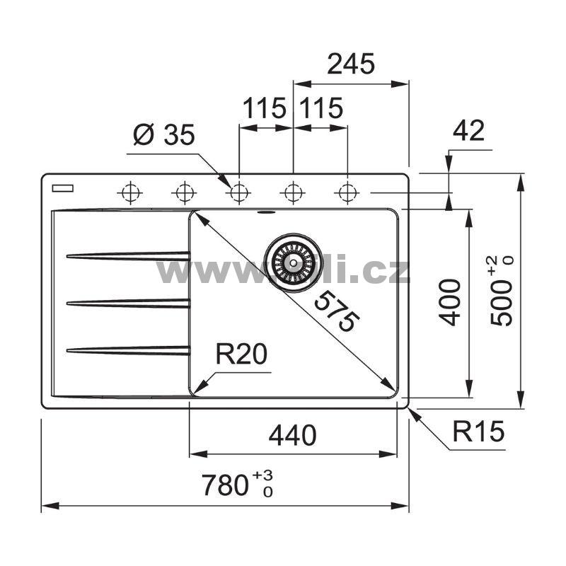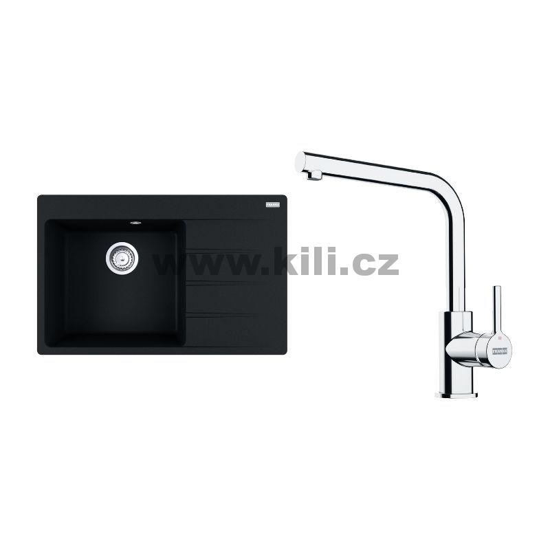 Set G251O dřez CNG 611-78 TL/2 onyx 3 1/2", odkapávací plocha vpravo + baterie FS 3230.031 LINA SMART chrom
