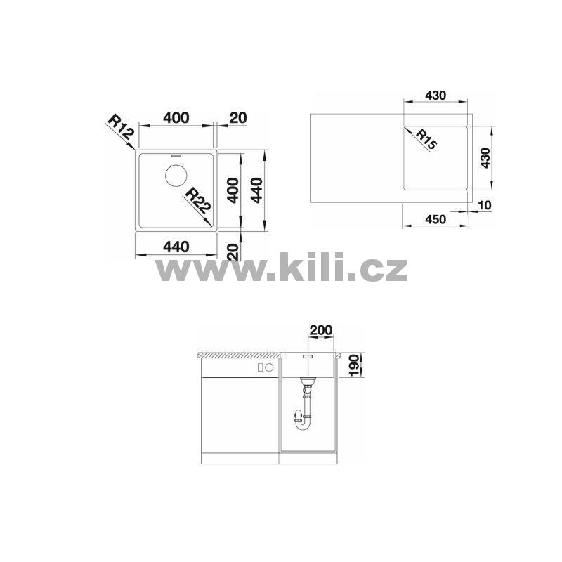 | Specifikace | Délka: 440 mm Šířka: 440 mm Hloubka: 190 mm Skříňka: 450 mm |