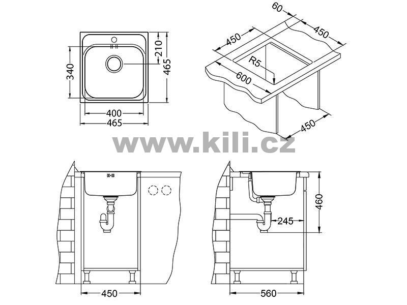 | Specifikace | Skříňka: 450 mm Délka: 465 mm Šířka: 465 mm Hloubka: 185 mm |