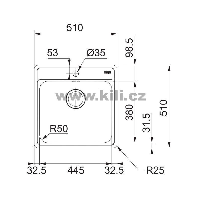 - Rozměr dřezu: 510 x 510 mm