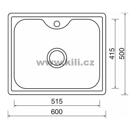 Dřez Bigger 600, 3 1/2“ nerez matný, bez odkapu, horní
