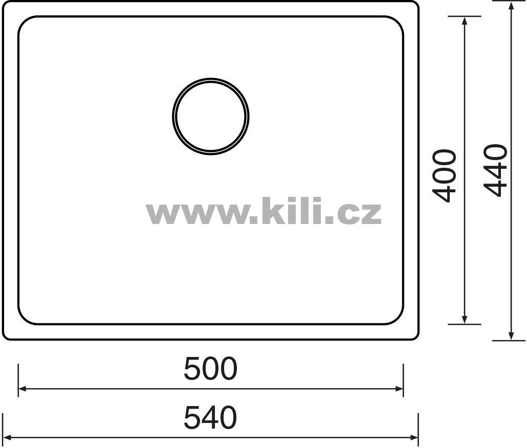 | Specifikace | Délka: 540 mm Šířka: 440 mm Hloubka: 200 mm Skříňka: 600 mm |
