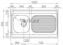 | Specifikace | Délka: 1000 mm Šířka: 600 mm Hloubka: 145 mm Skříňka: 450 mm |