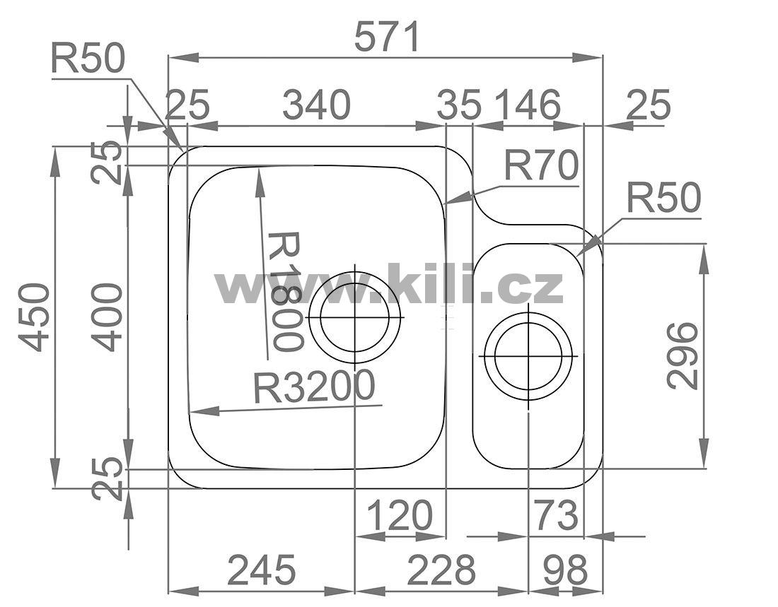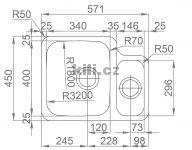 Dřez Duo 571.1, 3 1/2“ nerez leštěný, odkap vlevo, odkap vlevo, spodní