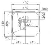 Dřez Laguna 490, 3 1/2“ nerez leštěný, bez odkapu, s plochým okrajem/spodní