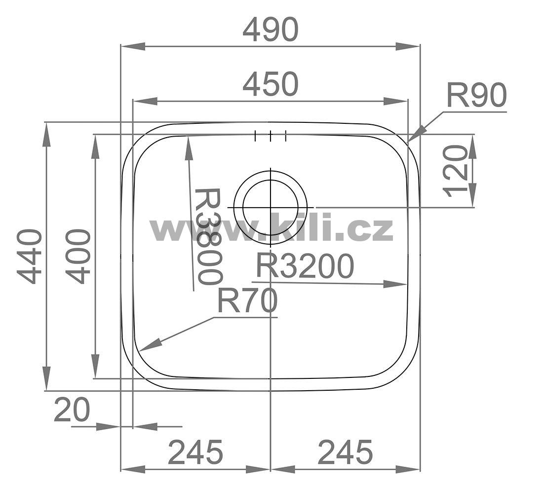 | Specifikace | Délka: 490 mm Šířka: 440 mm Hloubka: 200 mm Skříňka: 500 mm |