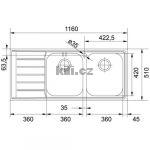 | Specifikace | Délka: 1160 mm Šířka: 510 mm Hloubka: 0 mm Skříňka: mm |