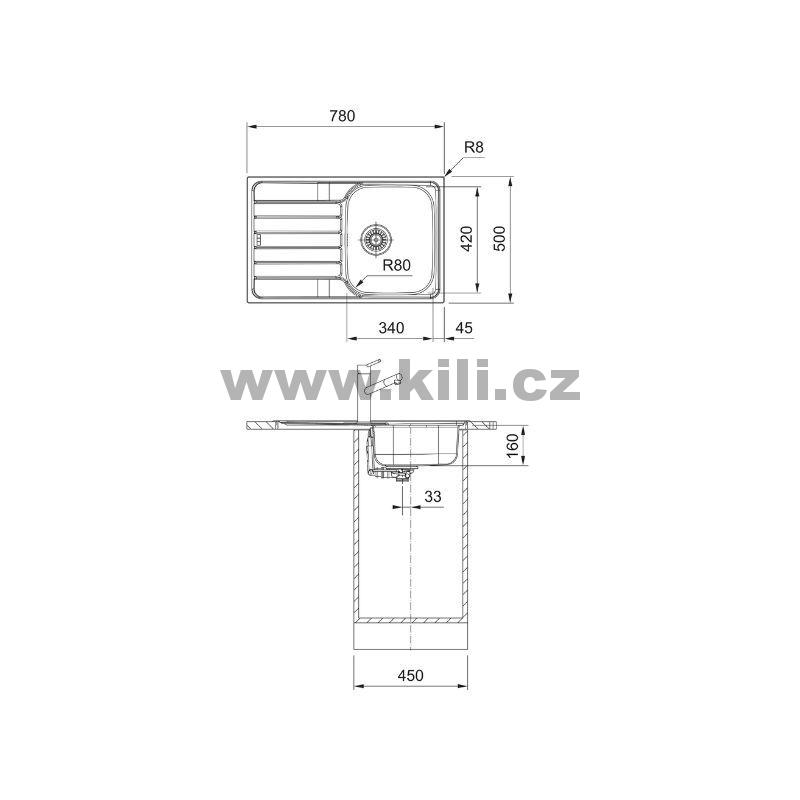 - Rozměr dřezové nádoby: 340 x 420 x 160 mm