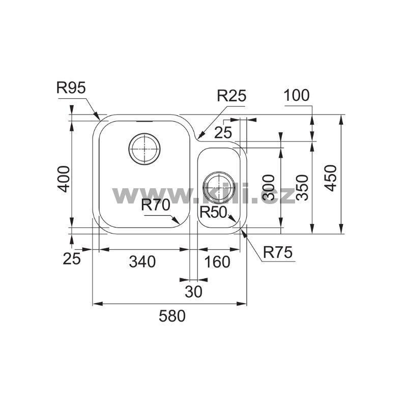 - Rozměr dřezové nádoby: 340 x 400 x 180 mm